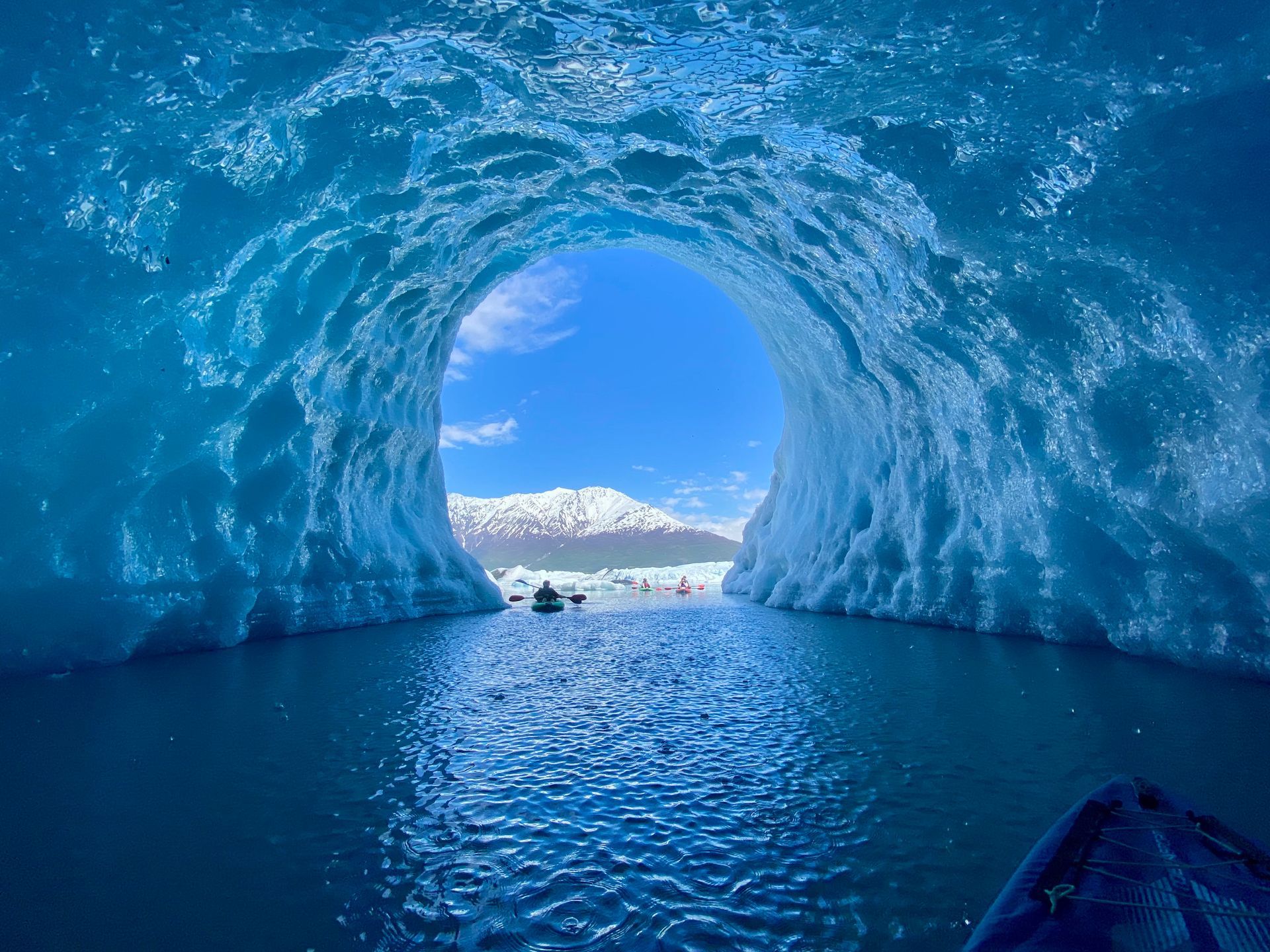 - Paddle across the glacial lake at the face of Knik Glacier. You’ll float past blue icebergs and get an up-close look at ancient ice in a setting that feels untouched.